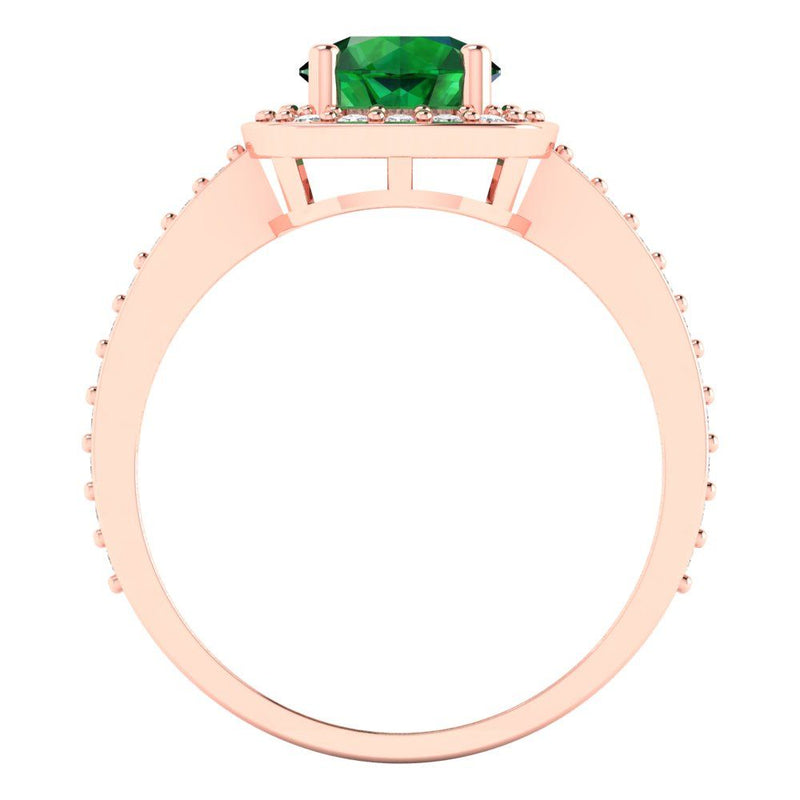 1.335 cttw Simulated Emerald Solitaire with Zirconia Simulated Diamond Accents Engagement Ring - Solid Gold (Round Cut,6.5mm)