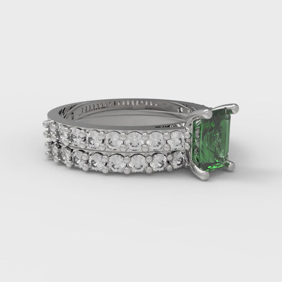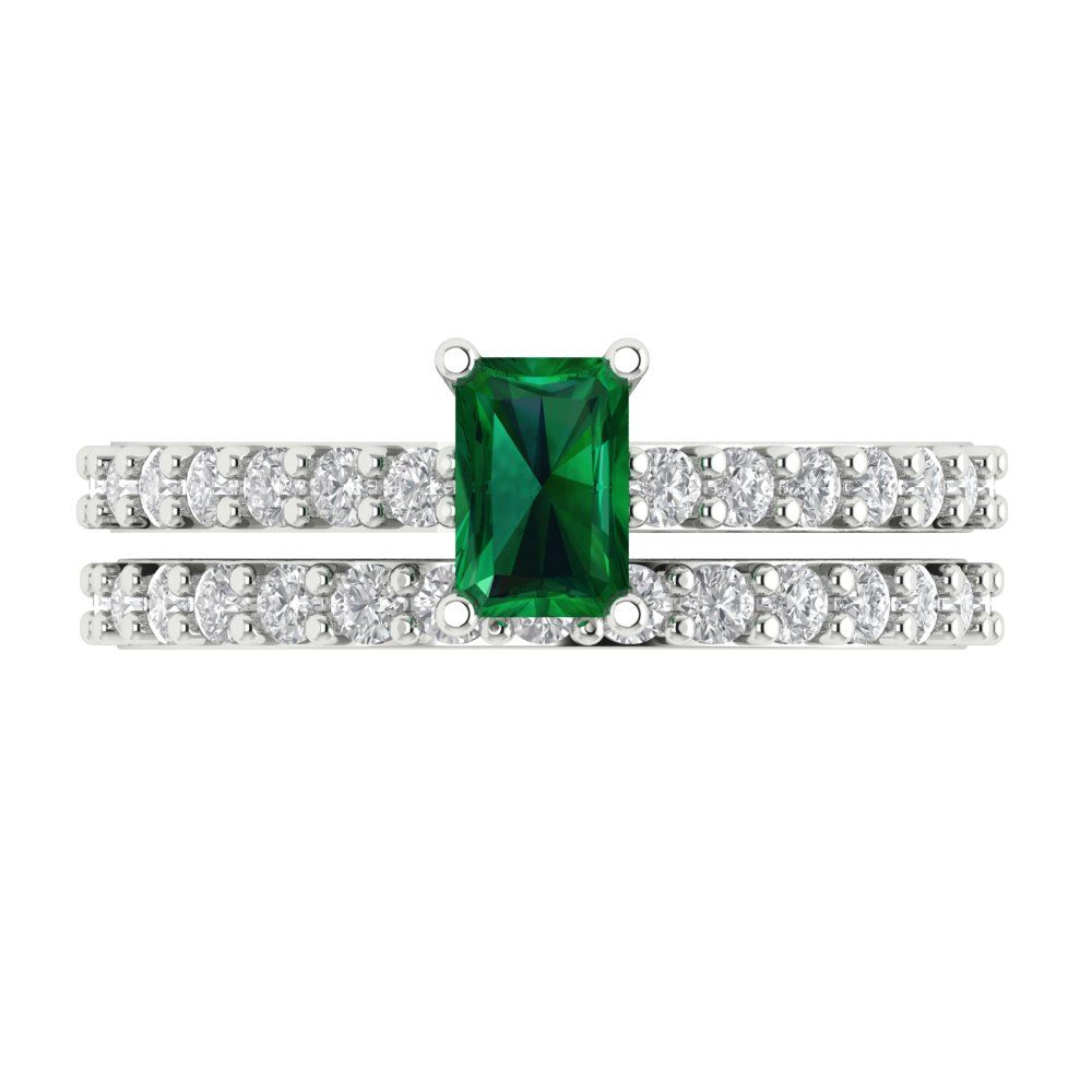 1.325 cttw Emerald Cut Simulated Emerald Bridal Set - Solid White Gold Engagement Ring & Wedding Band