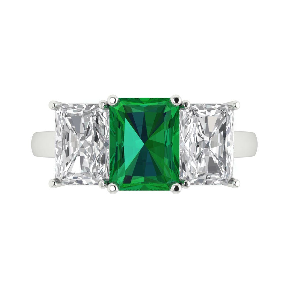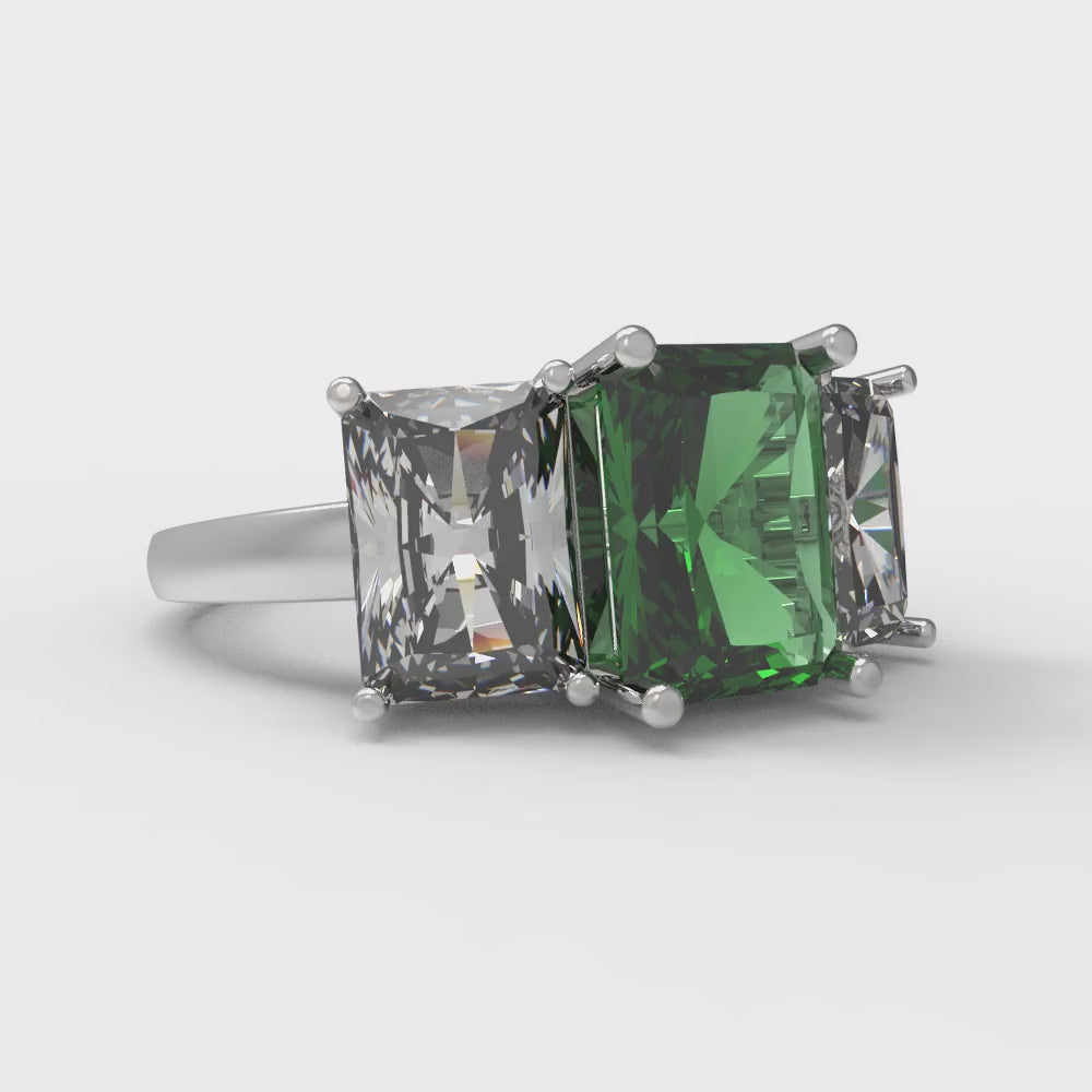 4 cttw Simulated Emerald Three-Stone Engagement Ring - Solid Gold (Emerald Cut,8x6mm)