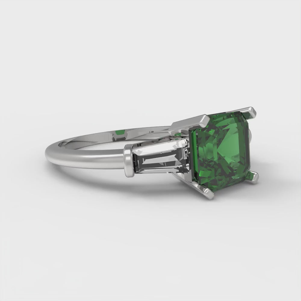 1.62 cttw Simulated Emerald Three-Stone Engagement Ring - Solid Gold (Square Emerald Cut,6.5X6.5mm)