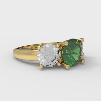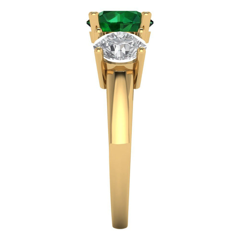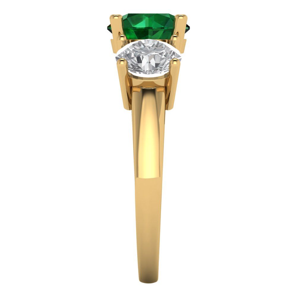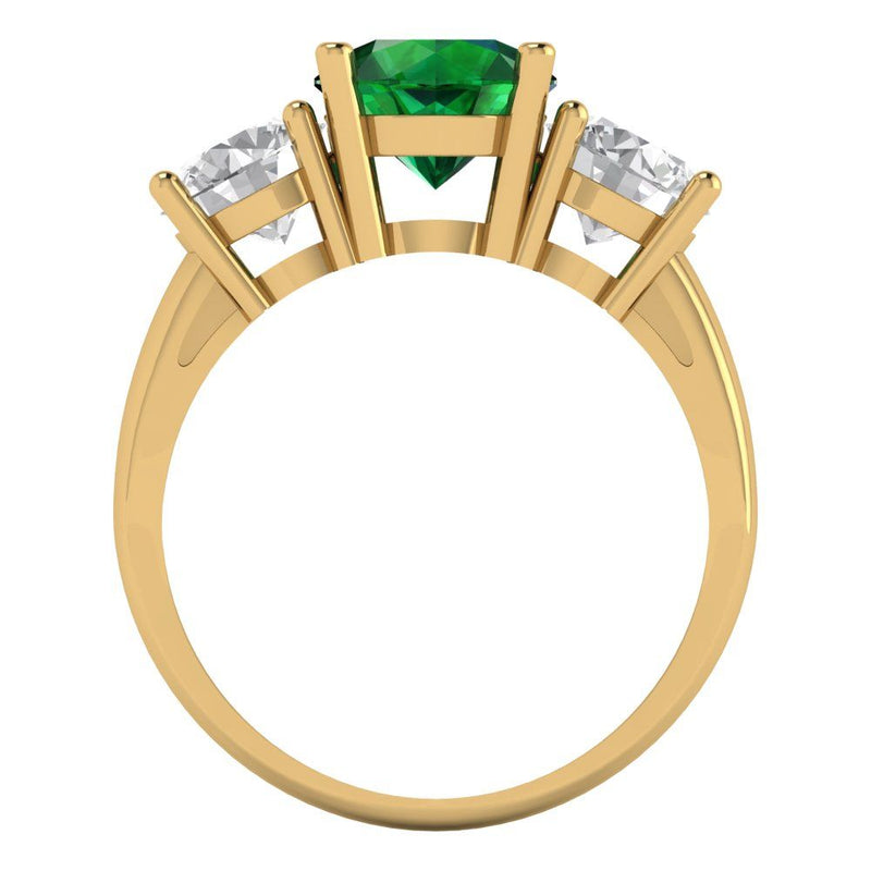 3 cttw Simulated Emerald Three-Stone Engagement Ring - Solid Gold (Round Cut,7.5mm)