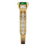 2.33 cttw Simulated Emerald Three-Stone Engagement Ring - Solid Gold (Round Cut,6.5mm)