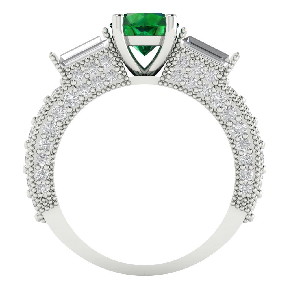 2.33 cttw Simulated Emerald Three-Stone Engagement Ring - Solid Gold (Round Cut,6.5mm)