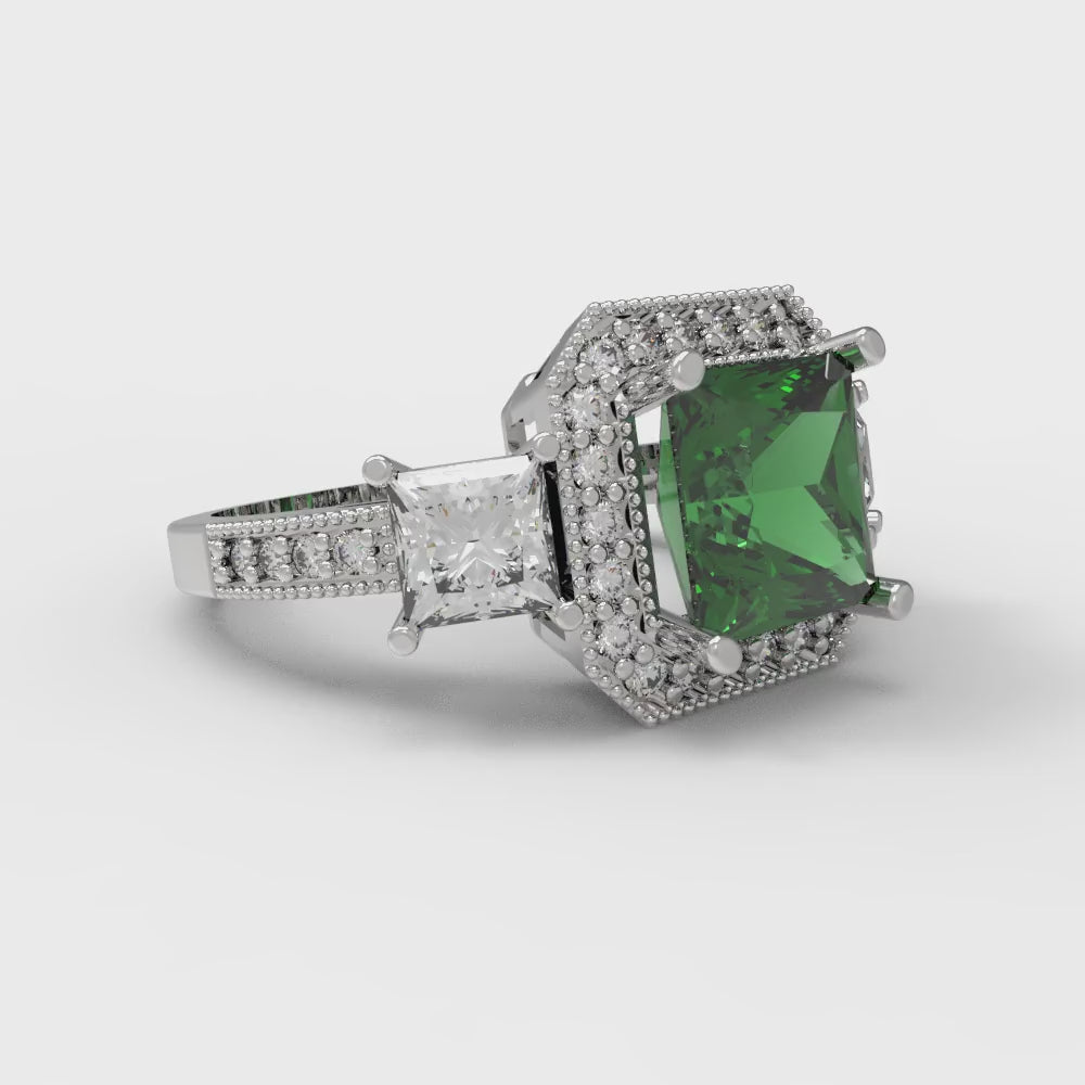 3.005 cttw Simulated Emerald Three-Stone Engagement Ring - Solid Gold (Princess Cut,7.0mm)