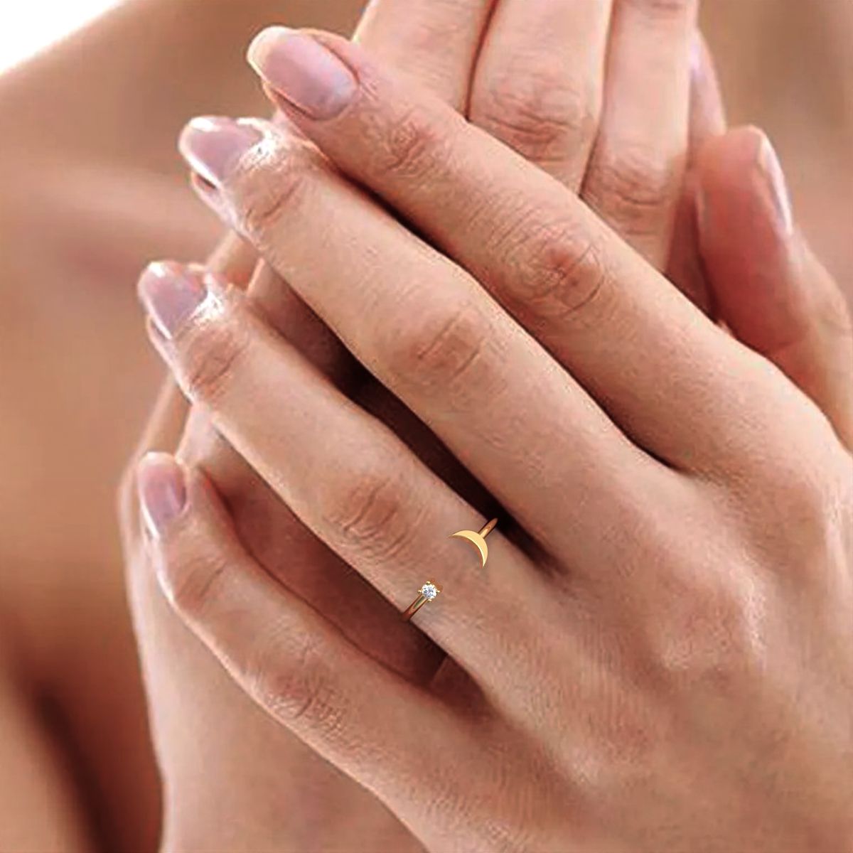 0.03Ct Round Cut Moissanite Minimalist adjustable half moon sun Toi et Moi Stackable 14K / 18K Solid Yellow Gold everyday wedding band