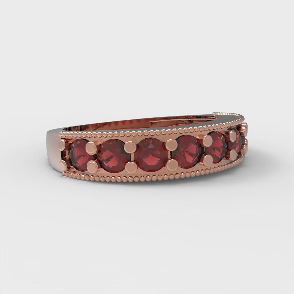 0.81 cttw Natural Garnet Round Cut Rose Gold Eternity Wedding Band