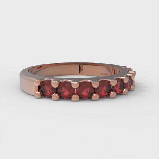 0.63 cttw Natural Garnet Round Cut Rose Gold Eternity Wedding Band