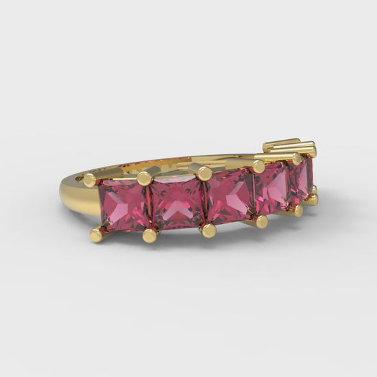 1.75 cttw Natural Garnet Princess Cut Yellow Gold Eternity Wedding Band