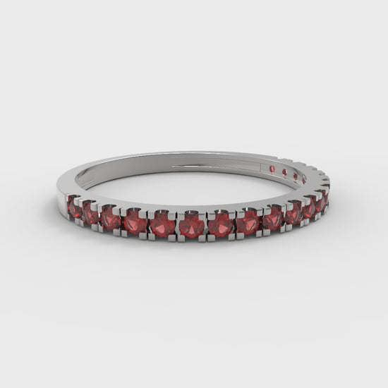 0.285 cttw Natural Garnet Round Cut White Gold Eternity Wedding Band