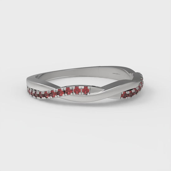 0.16 cttw Natural Garnet Round Cut White Gold Eternity Wedding Band