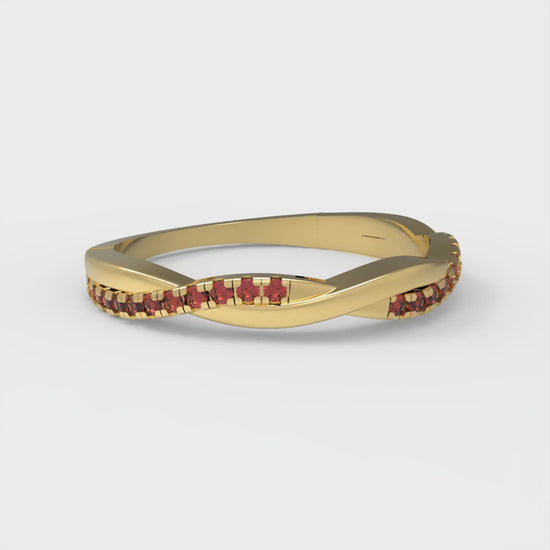 0.16 cttw Natural Garnet Round Cut Yellow Gold Eternity Wedding Band