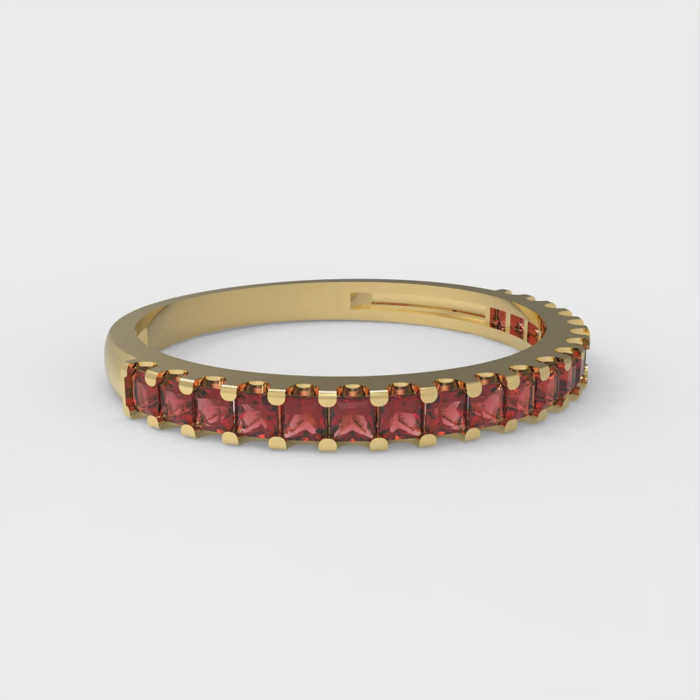 0.285 cttw Natural Garnet Princess Cut Yellow Gold Eternity Wedding Band