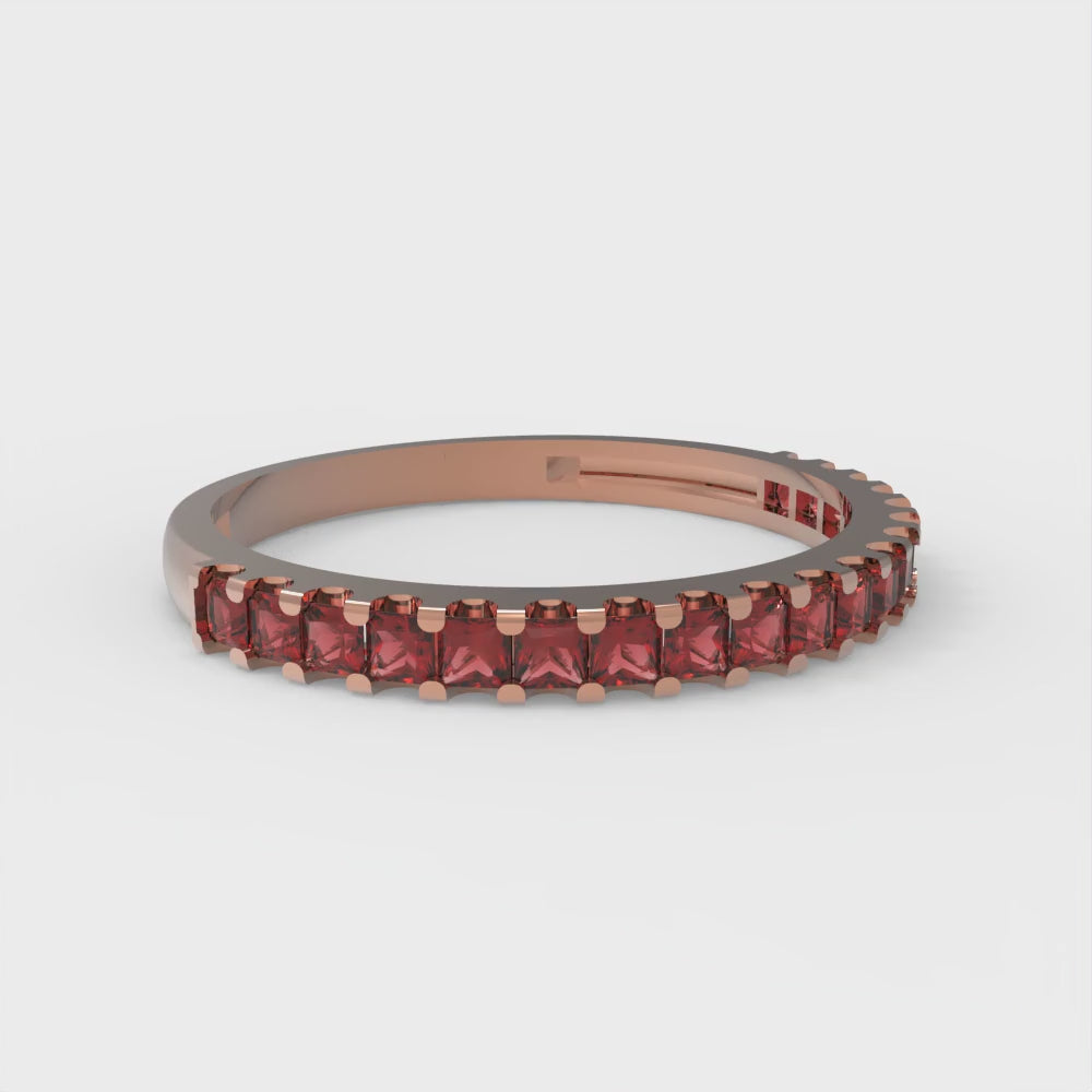 0.285 cttw Natural Garnet Princess Cut Rose Gold Eternity Wedding Band