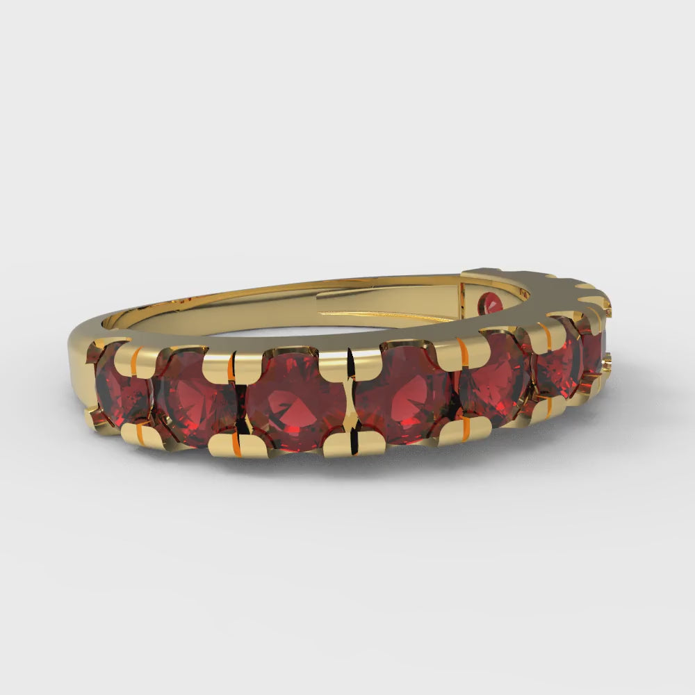 1 cttw Natural Garnet Round Cut Yellow Gold Eternity Wedding Band