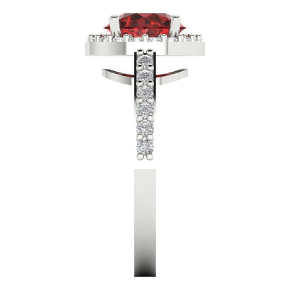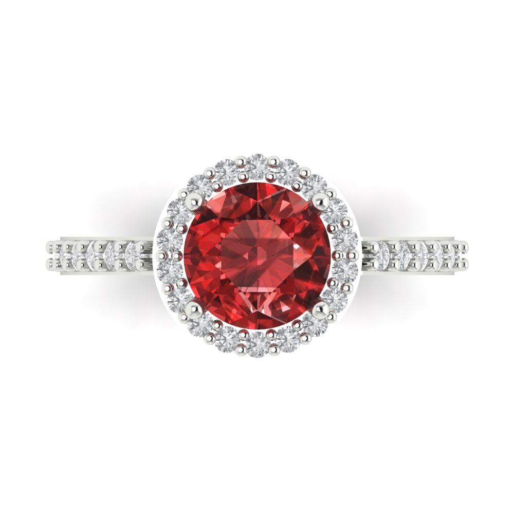 1.86 cttw Natural Garnet Hidden Halo Engagement Ring - Solid Gold (Round Cut,7.5mm)