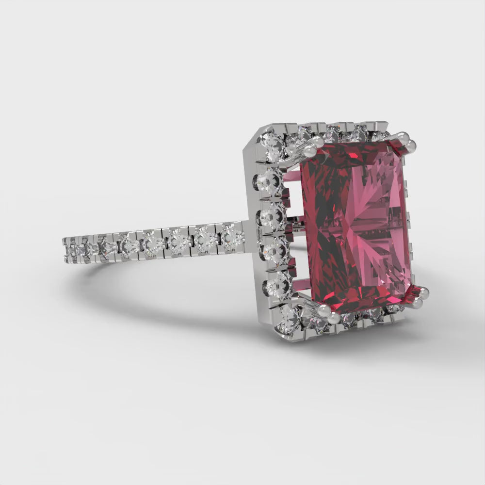 1.86 cttw Natural Garnet Hidden Halo Engagement Ring - Solid Gold (Emerald Cut,7.5x5.5mm)
