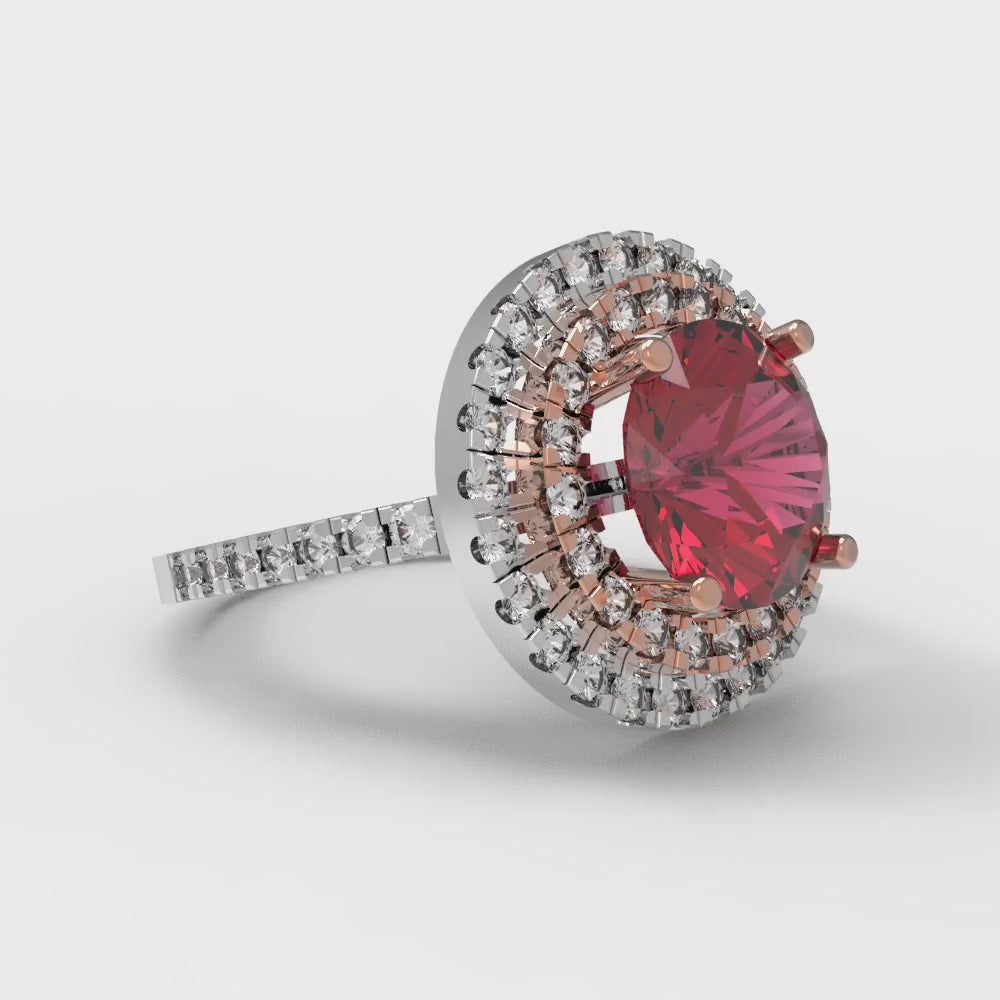 2.6 cttw Natural Garnet Hidden Halo Engagement Ring - Solid Gold (Round Cut,8.0mm)