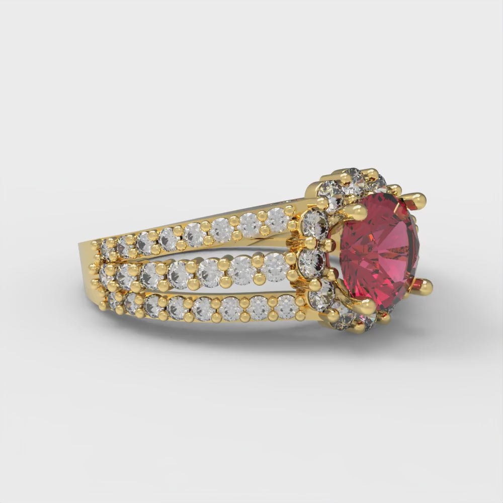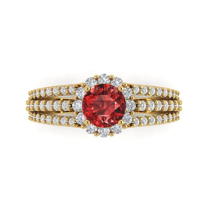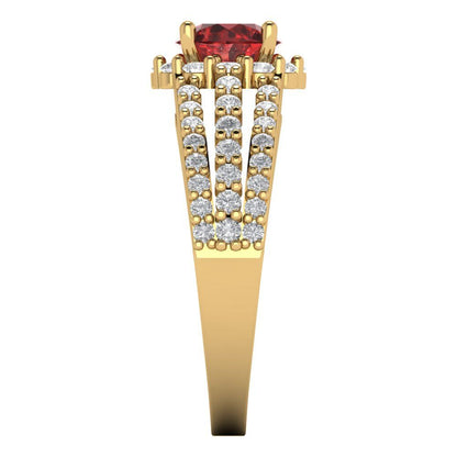 1.83 cttw Natural Garnet Hidden Halo Engagement Ring - Solid Gold (Round Cut,6.5mm)