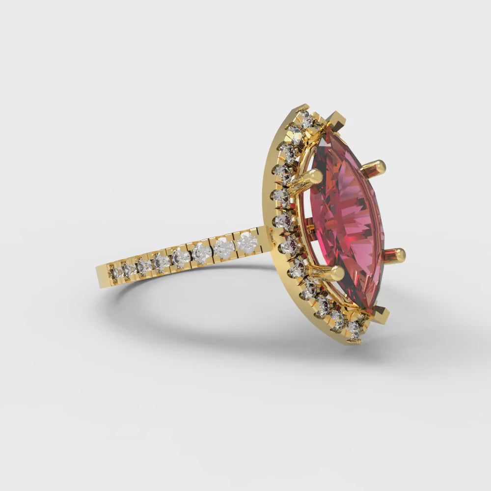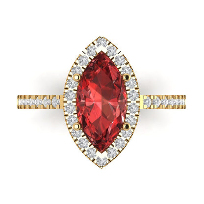 2.38 cttw Natural Garnet Hidden Halo Engagement Ring - Solid Gold (Marquise Cut,12x6mm )