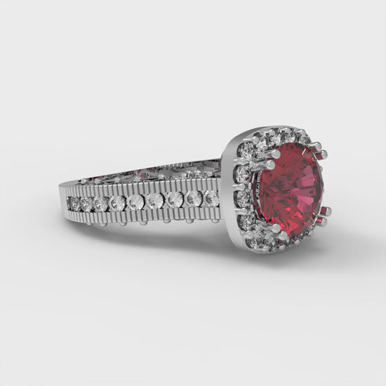2.37 cttw Natural Garnet Hidden Halo Engagement Ring - Solid Gold (Round Cut,7.5mm)