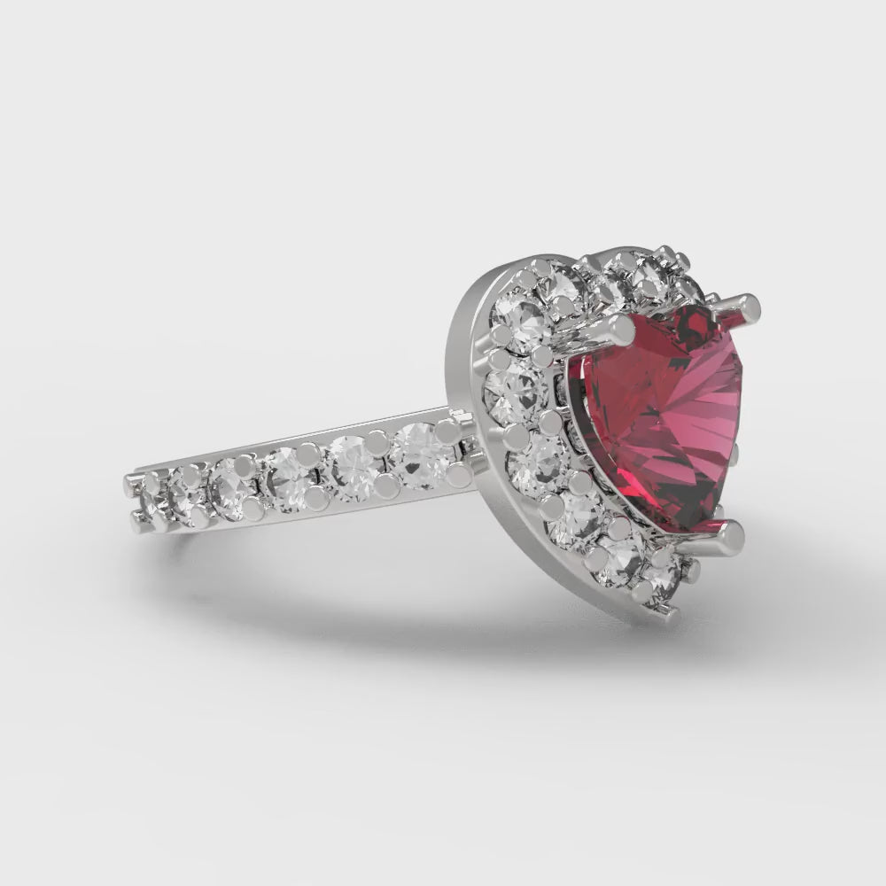 2.03 cttw Natural Garnet Hidden Halo Engagement Ring - Solid Gold (Heart Cut,7.0mm)