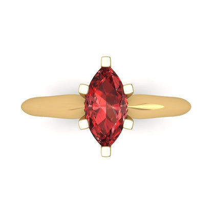 1 cttw Natural Garnet Solitaire Engagement Ring - Solid Gold (Marquise Cut,10x5mm)