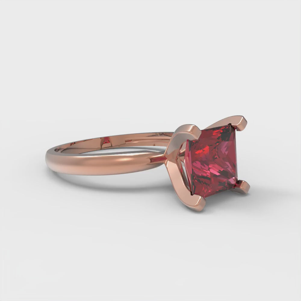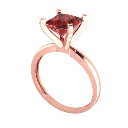 2 cttw Natural Garnet Solitaire Engagement Ring - Solid Gold (Princess Cut,7.0mm)