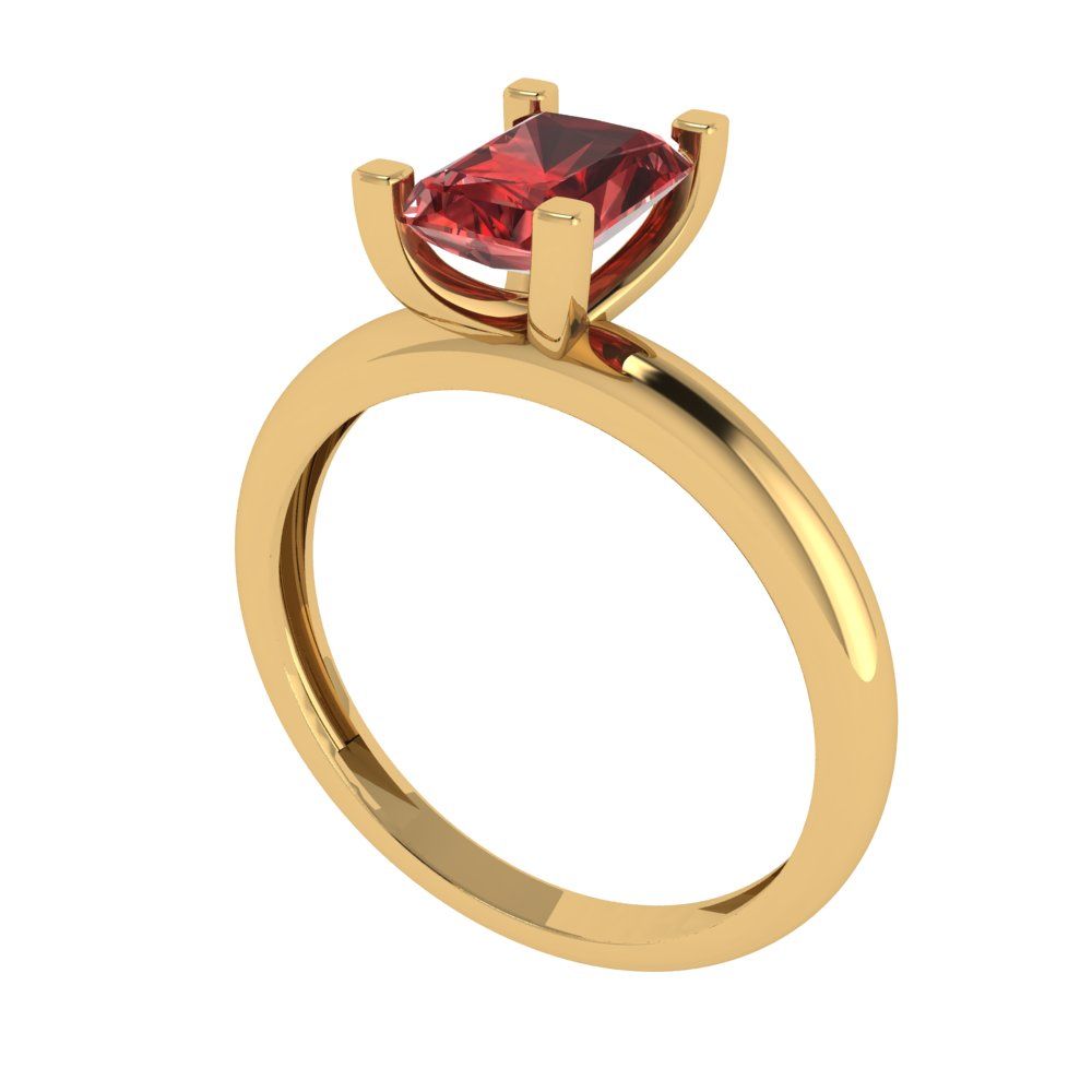 1 cttw Natural Garnet Solitaire Engagement Ring - Solid Gold (Emerald Cut,7X5mm)