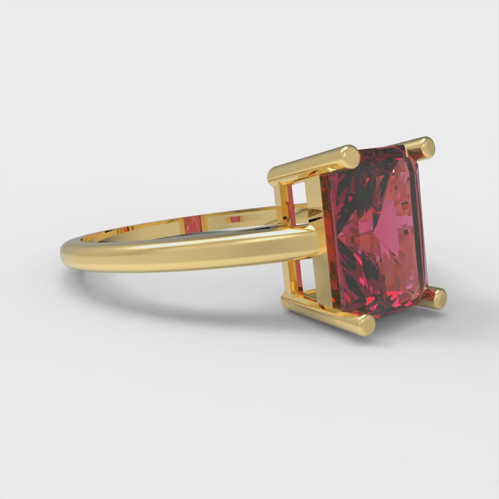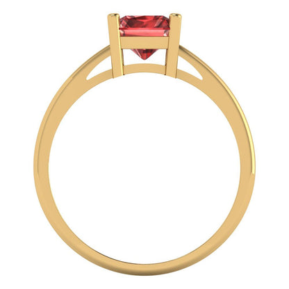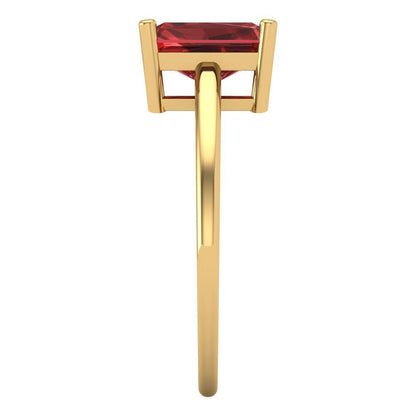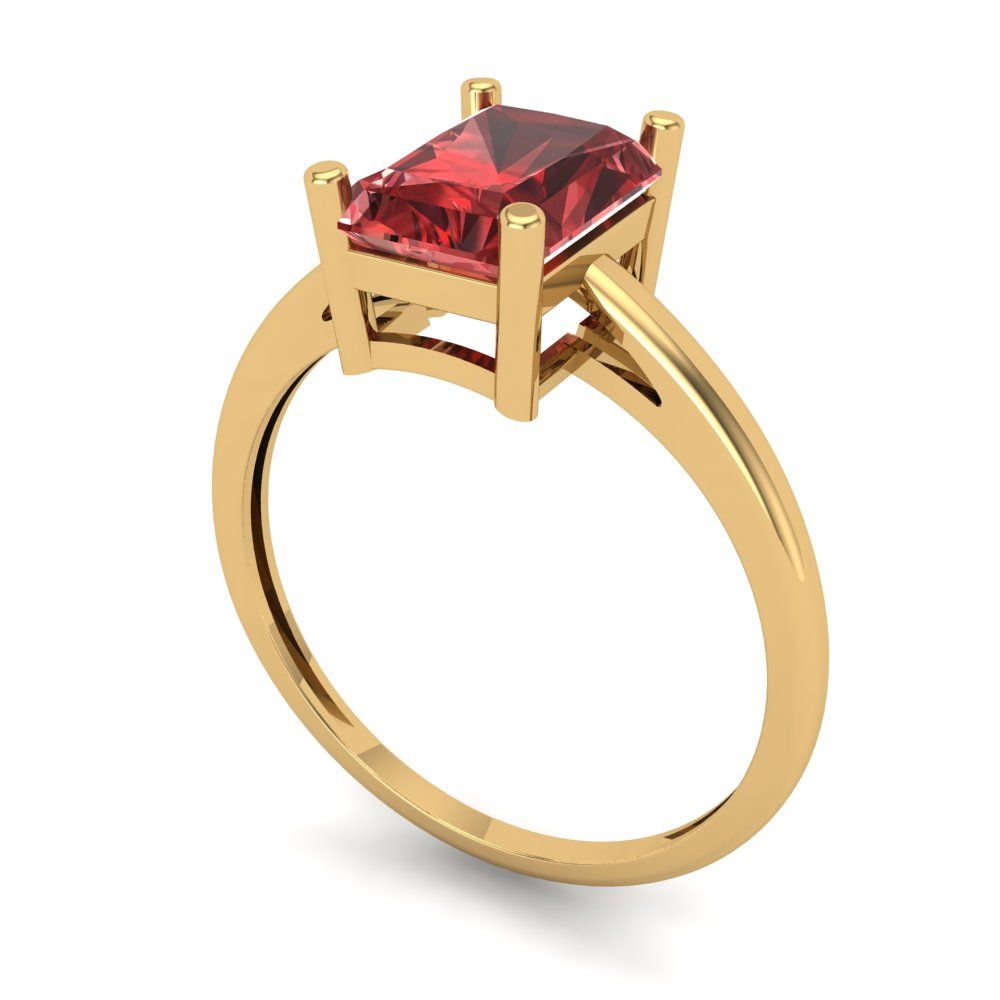 2 cttw Natural Garnet Solitaire Engagement Ring - Solid Gold (Emerald Cut,8x6mm)