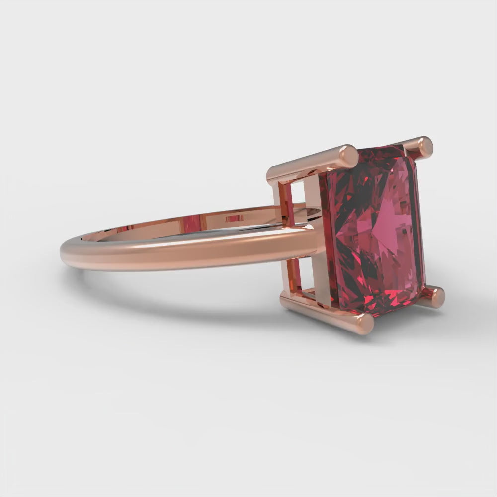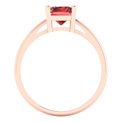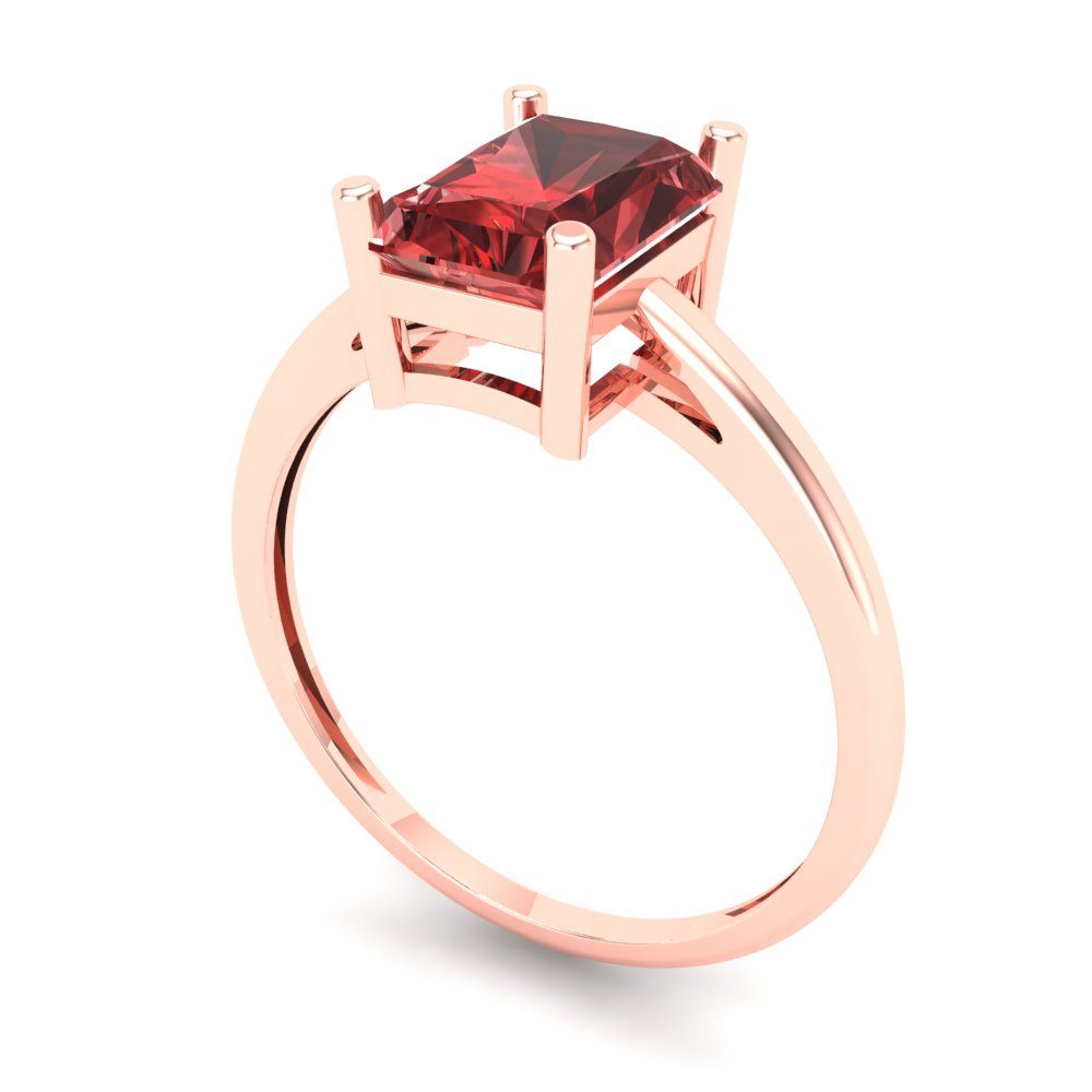 2 cttw Natural Garnet Solitaire Engagement Ring - Solid Gold (Emerald Cut,8x6mm)