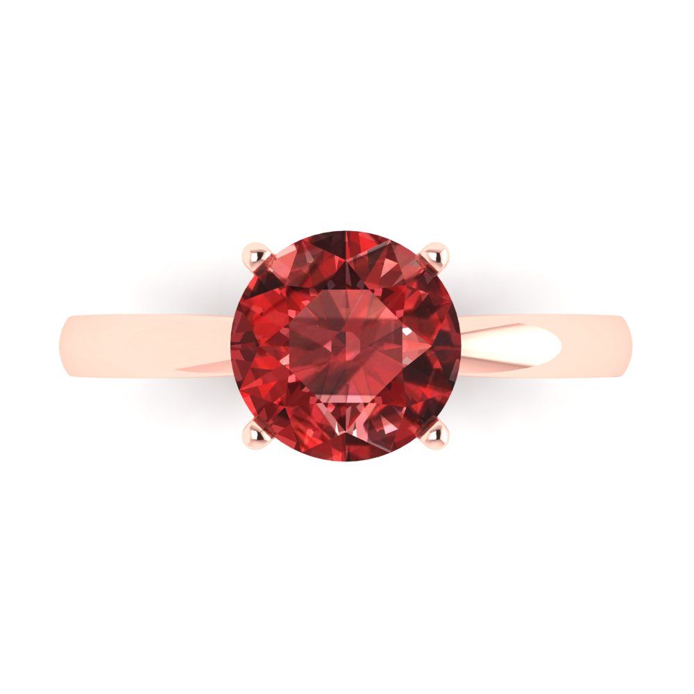 2 cttw Natural Garnet Solitaire Engagement Ring - Solid Gold (Round Cut,8.0mm)