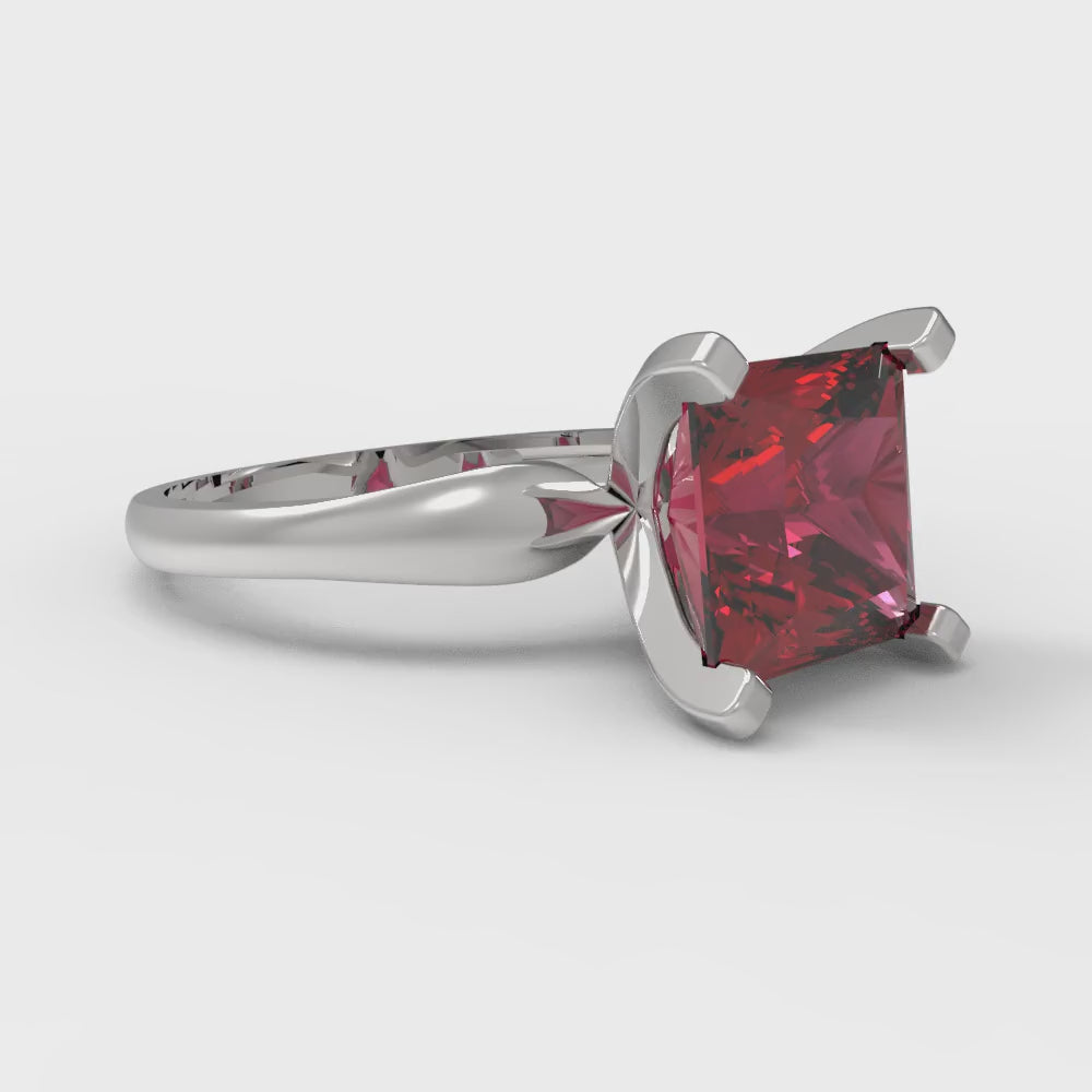 2.5 cttw Natural Garnet Solitaire Engagement Ring - Solid Gold (Princess Cut,7.5mm)