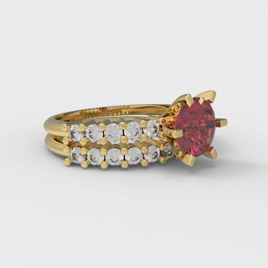 1.66 cttw Round Cut Natural Garnet Bridal Set - Solid Yellow Gold Engagement Ring & Wedding Band