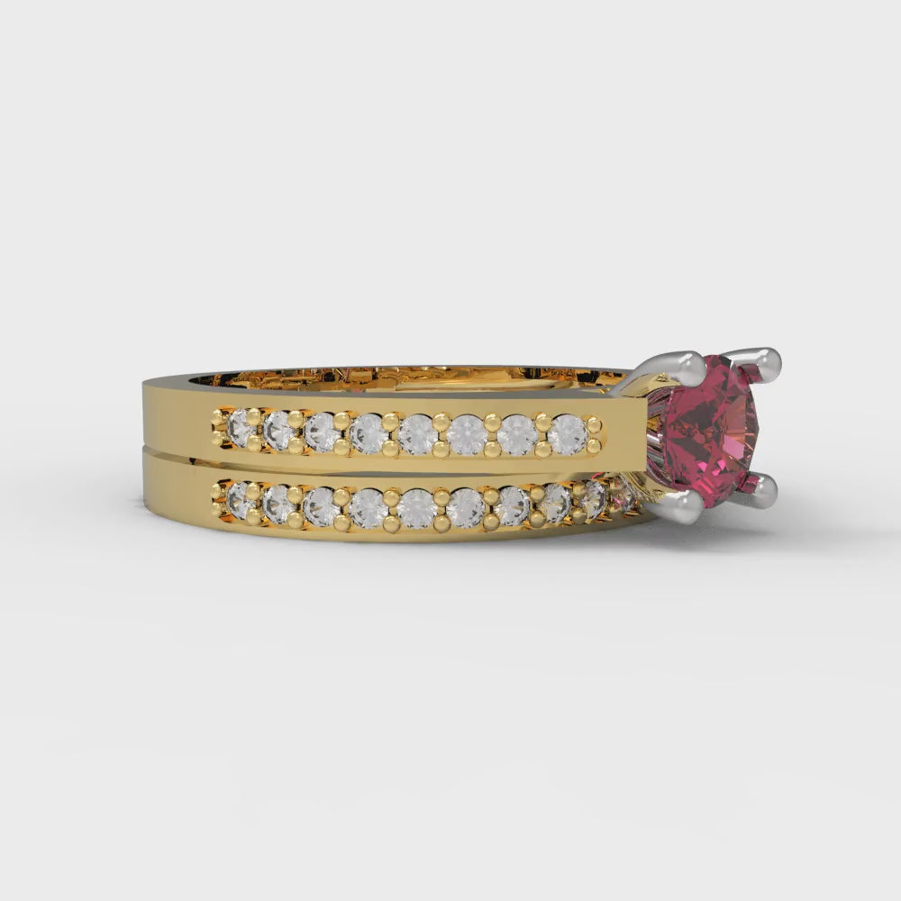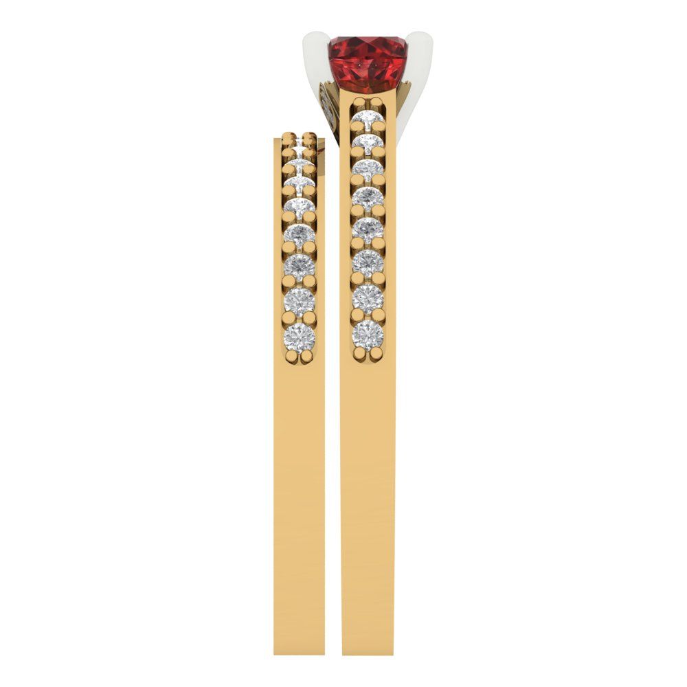 0.86 cttw Round Cut Natural Garnet Bridal Set - Solid Yellow/White Gold Engagement Ring & Wedding Band