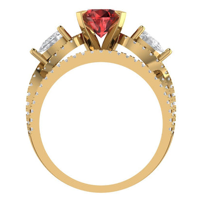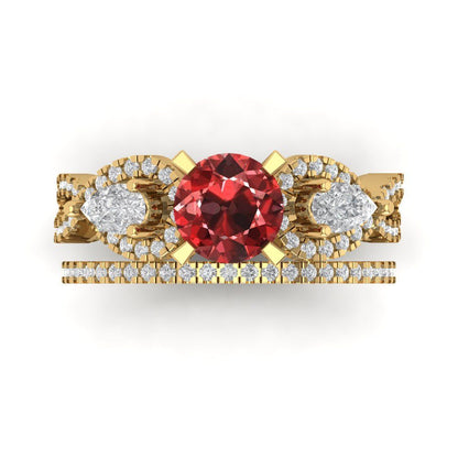 1.925 cttw Round Cut Natural Garnet Bridal Set - Solid Yellow Gold Engagement Ring & Wedding Band
