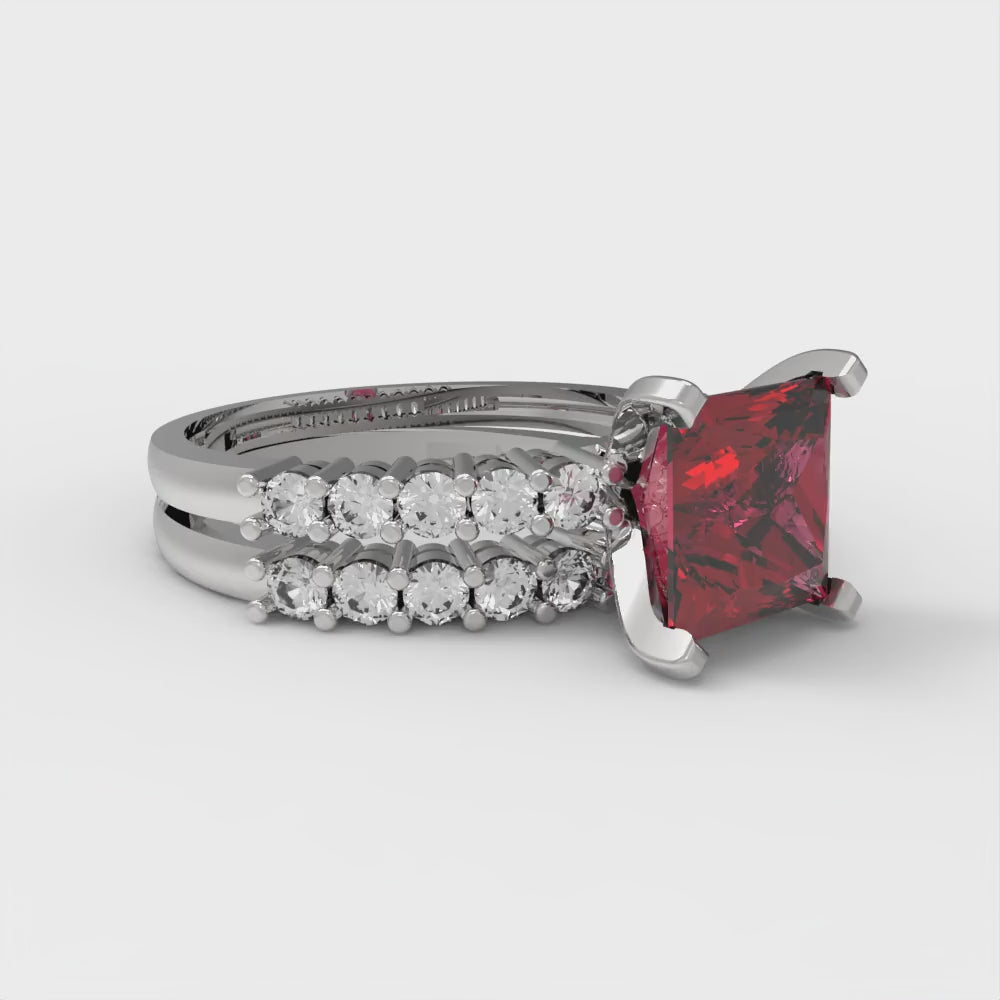 2.63 cttw Princess Cut Natural Garnet Bridal Set - Solid White Gold Engagement Ring & Wedding Band
