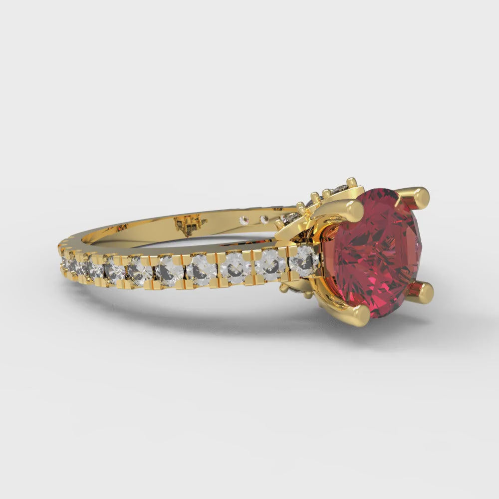 1.465 cttw Natural Garnet Solitaire with Zirconia Simulated Diamond Accents Engagement Ring - Solid Gold (Round Cut,6.5mm)