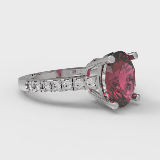 2.21 cttw Natural Garnet Solitaire with Zirconia Simulated Diamond Accents Engagement Ring - Solid Gold (Oval Cut,9X7mm)