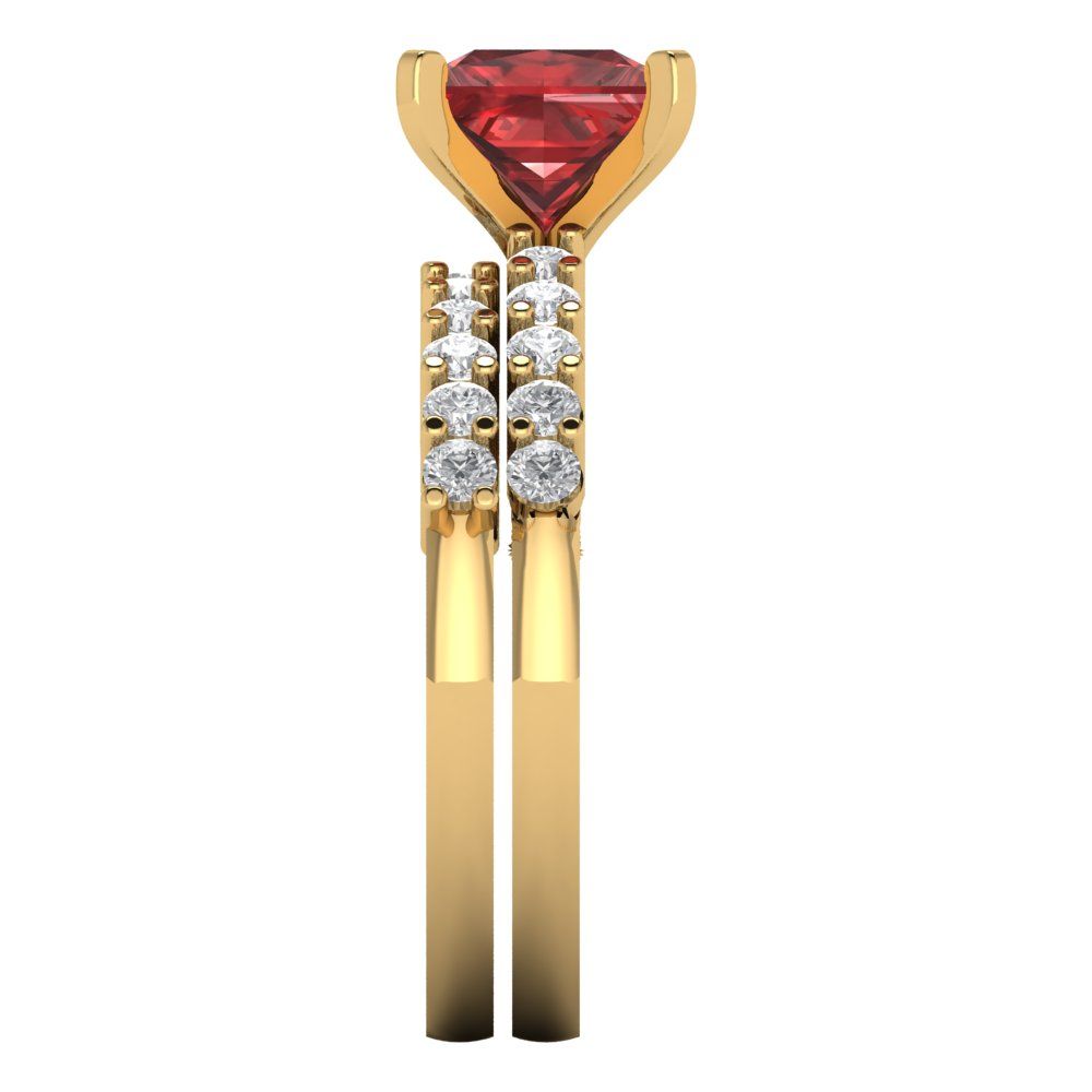 2.63 cttw Princess Cut Natural Garnet Bridal Set - Solid Yellow Gold Engagement Ring & Wedding Band