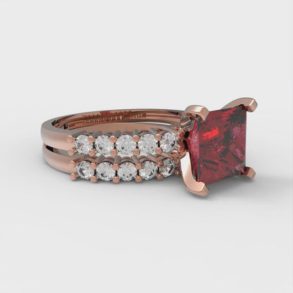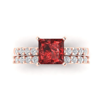 2.63 cttw Princess Cut Natural Garnet Bridal Set - Solid Rose Gold Engagement Ring & Wedding Band