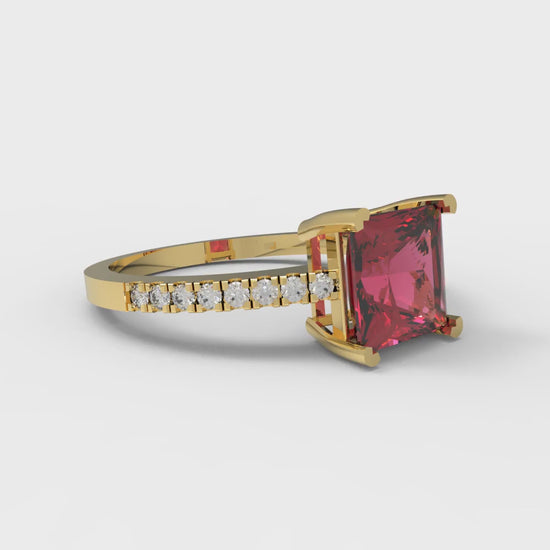 1.62 cttw Natural Garnet Solitaire with Zirconia Simulated Diamond Accents Engagement Ring - Solid Gold (Princess Cut,6.5mm)