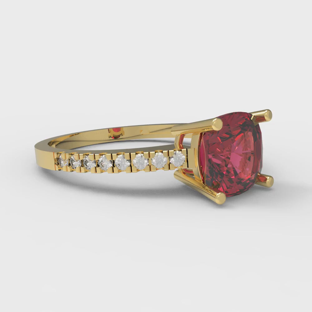 2.7 cttw Natural Garnet Solitaire with Zirconia Simulated Diamond Accents Engagement Ring - Solid Gold (Cushion Cut,6.5mm)