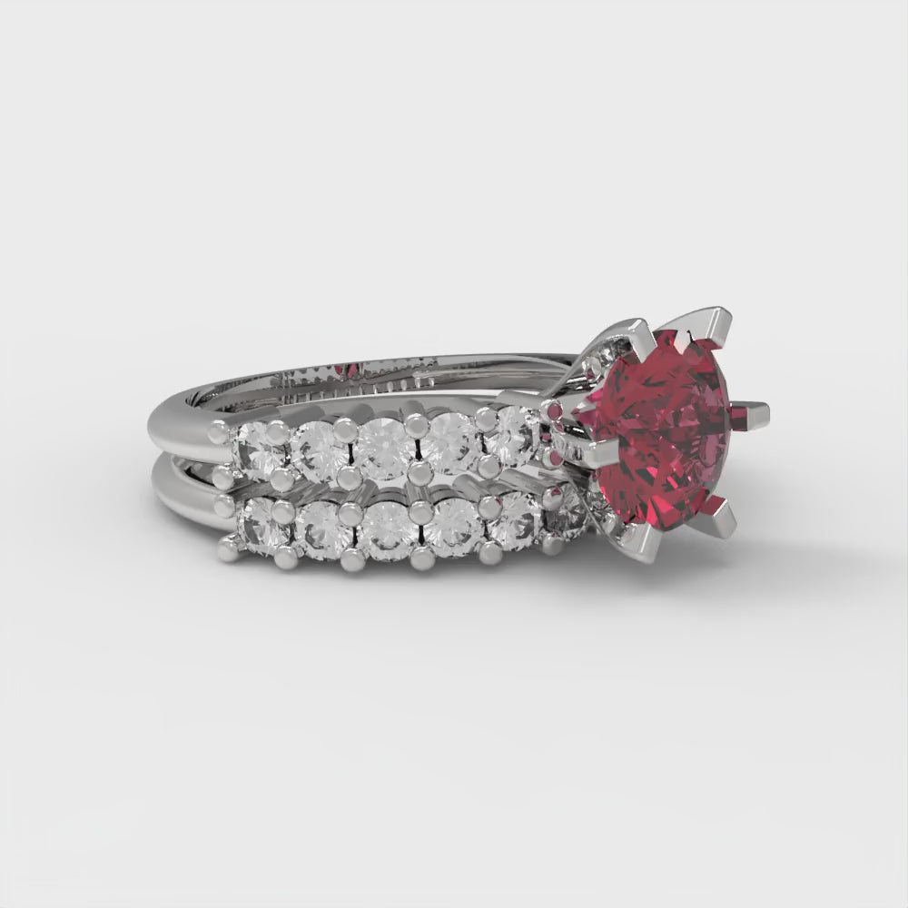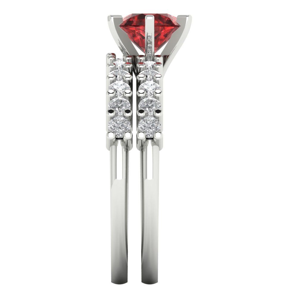 1.66 cttw Round Cut Natural Garnet Bridal Set - Solid White Gold Engagement Ring & Wedding Band