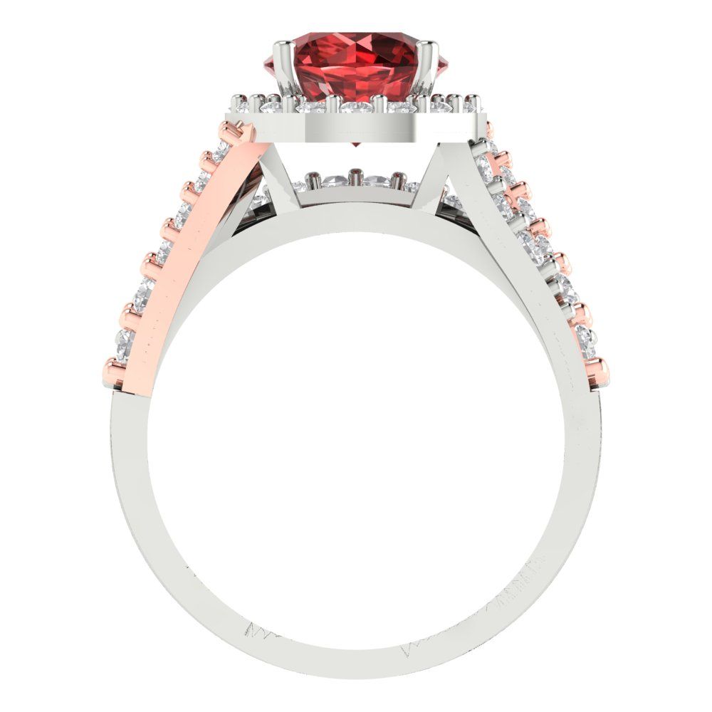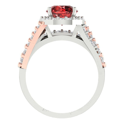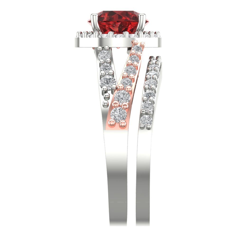2.32 cttw Round Cut Natural Garnet Bridal Set - Solid White/Rose Gold Engagement Ring & Wedding Band