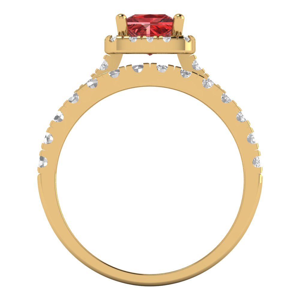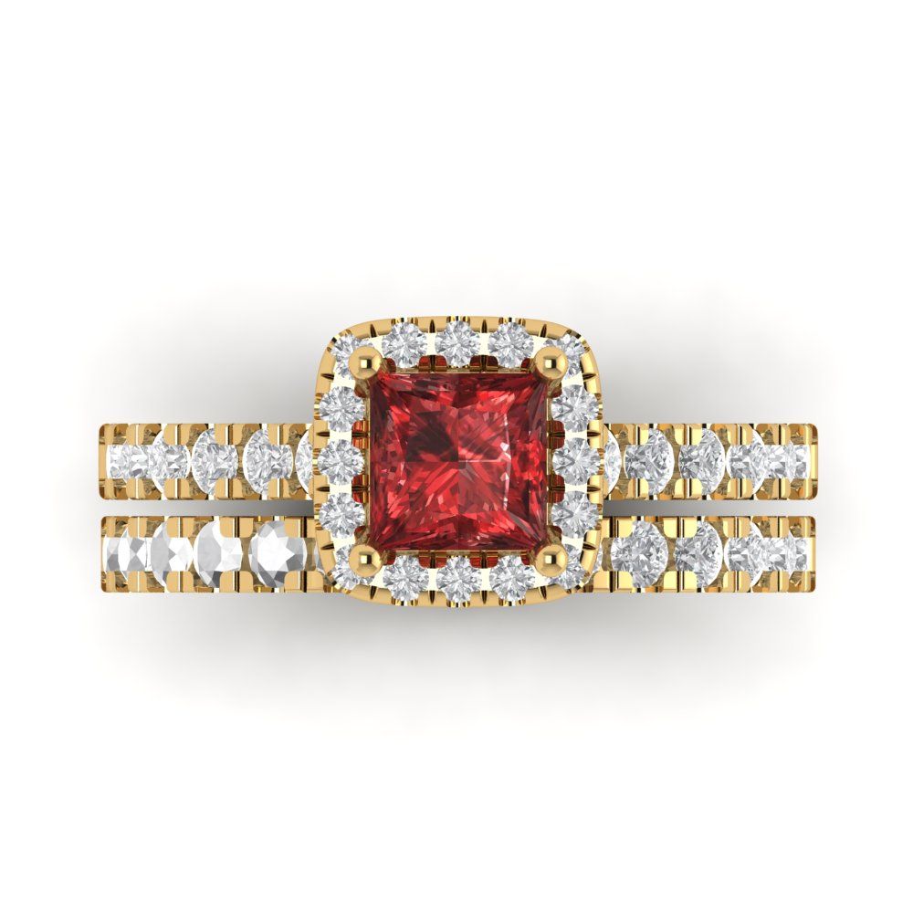1.56 cttw Princess Cut Natural Garnet Bridal Set - Solid Yellow Gold Engagement Ring & Wedding Band