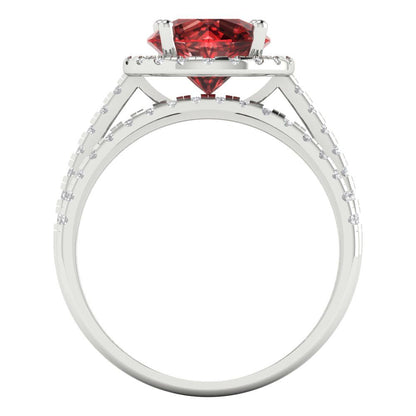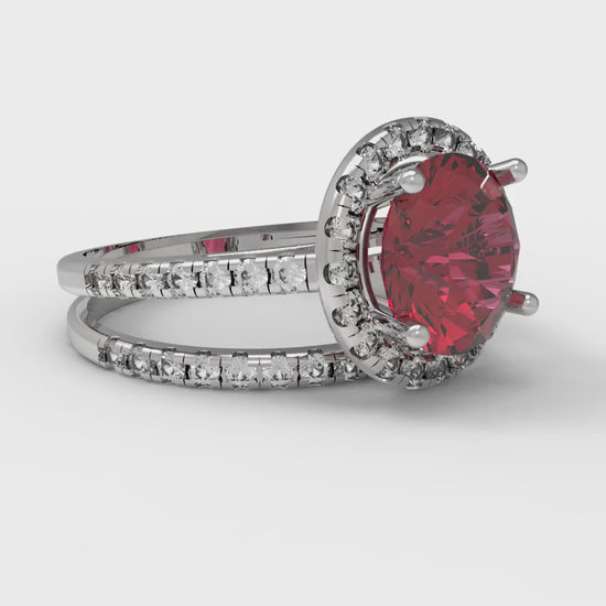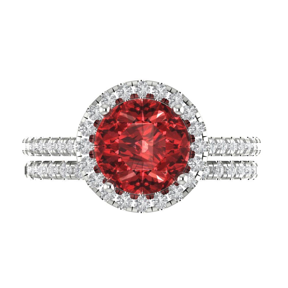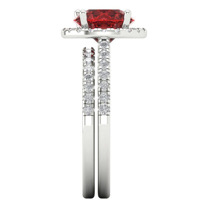 2.52 cttw Round Cut Natural Garnet Bridal Set - Solid White Gold Engagement Ring & Wedding Band