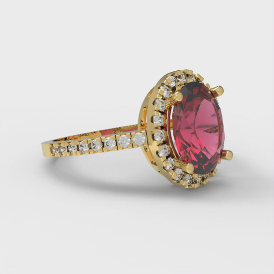 2.27 cttw Natural Garnet Solitaire with Zirconia Simulated Diamond Accents Engagement Ring - Solid Gold (Oval Cut,9X7mm)