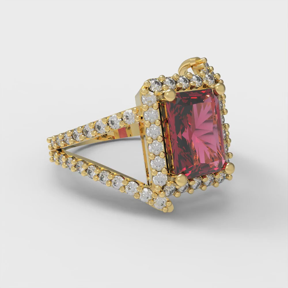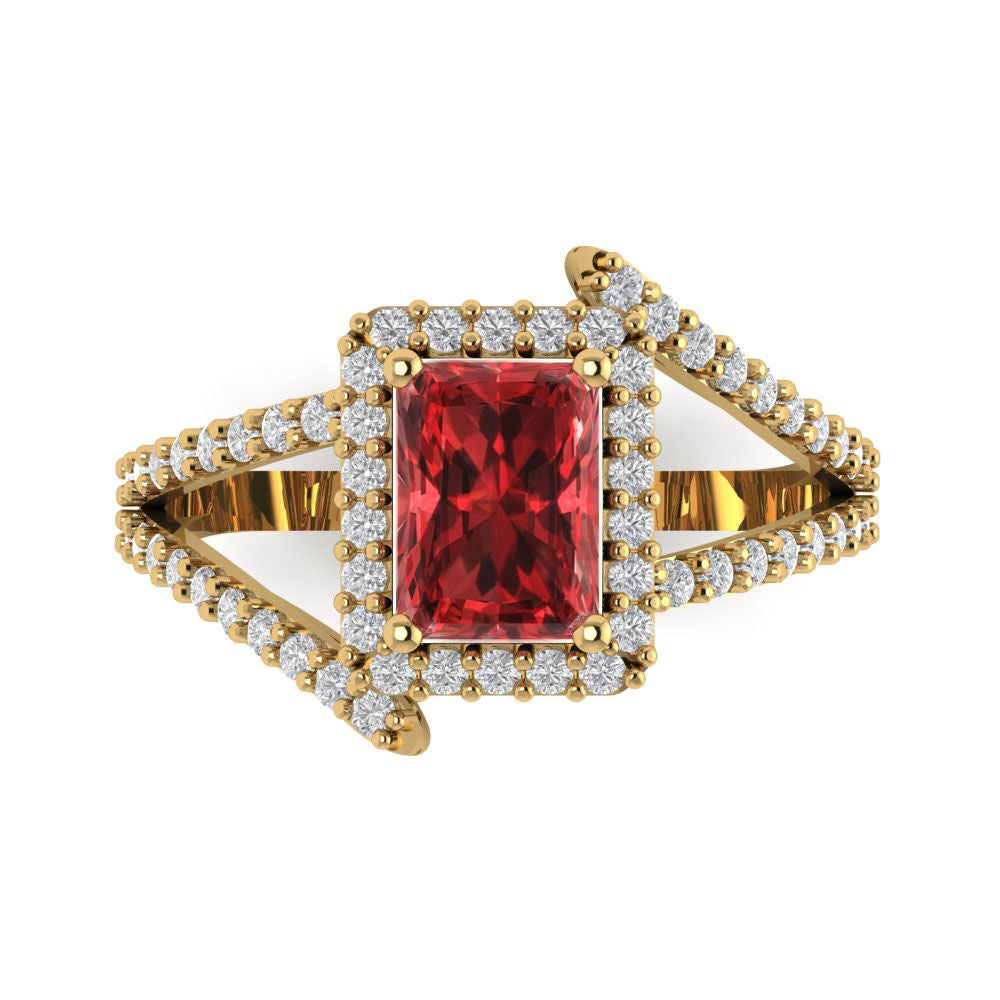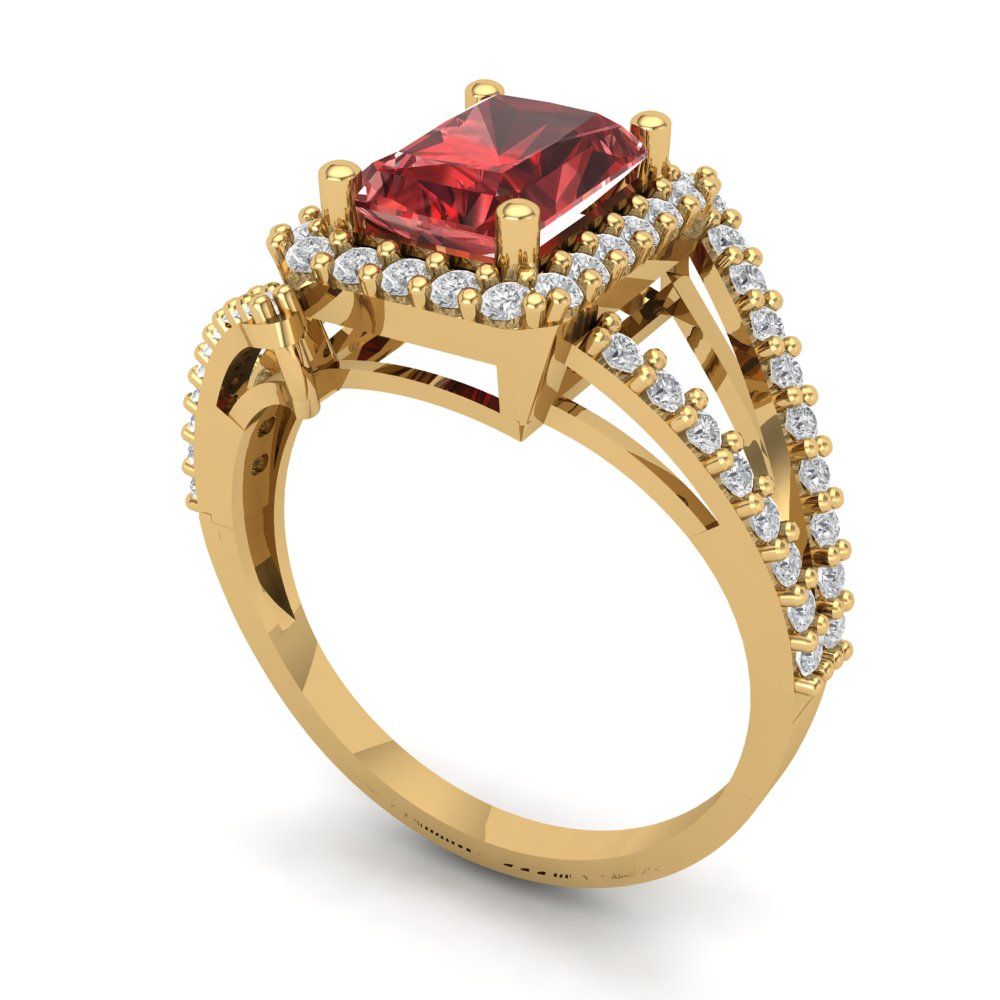 1.935 cttw Natural Garnet Solitaire with Zirconia Simulated Diamond Accents Engagement Ring - Solid Gold (Emerald Cut,7.5x5.5mm)