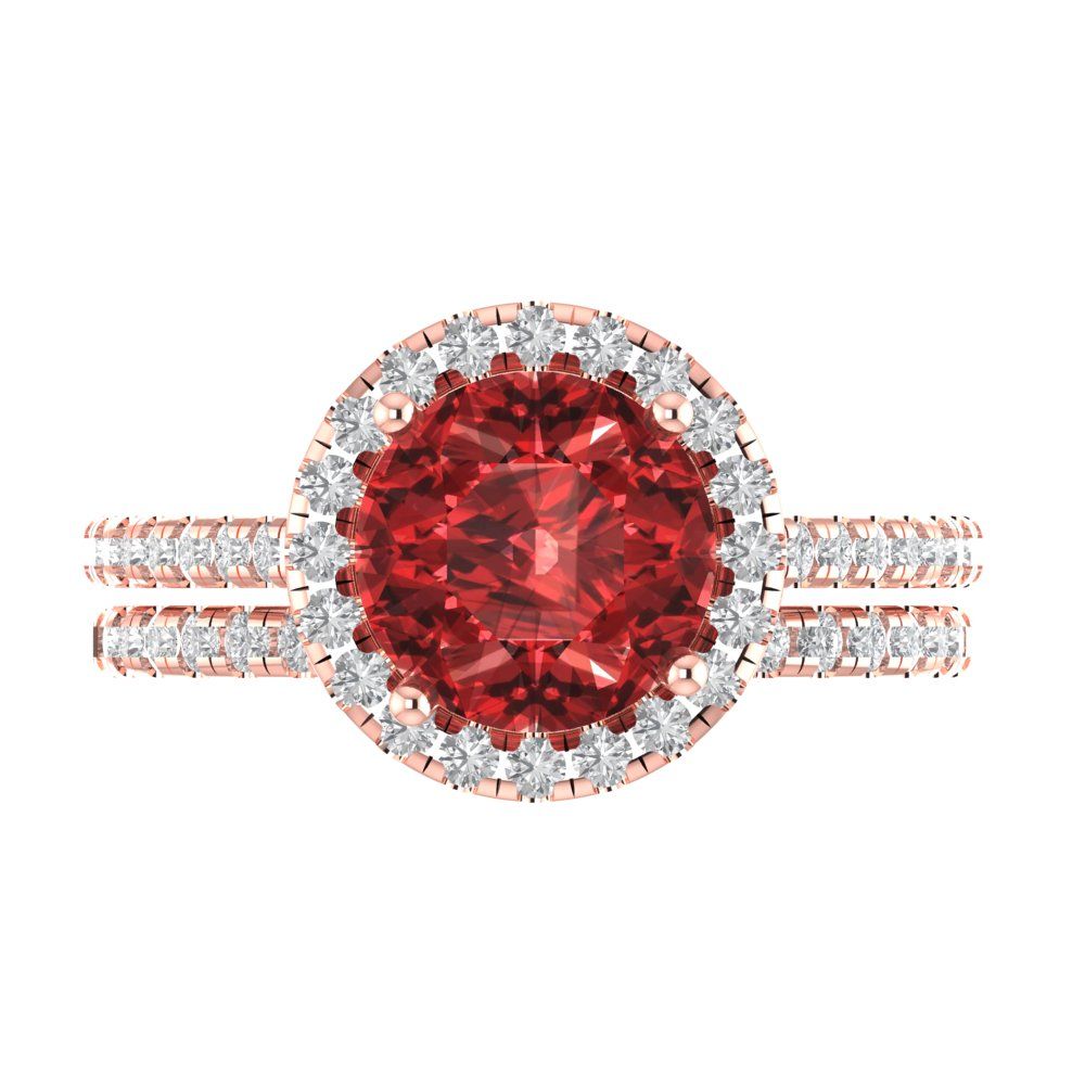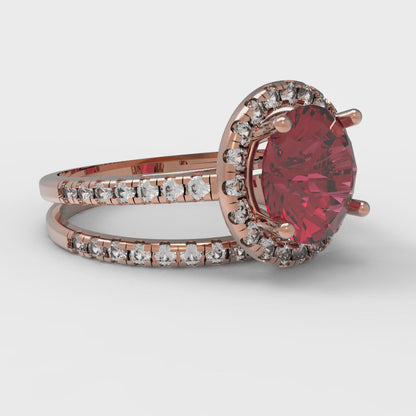2.52 cttw Round Cut Natural Garnet Bridal Set - Solid Rose Gold Engagement Ring & Wedding Band