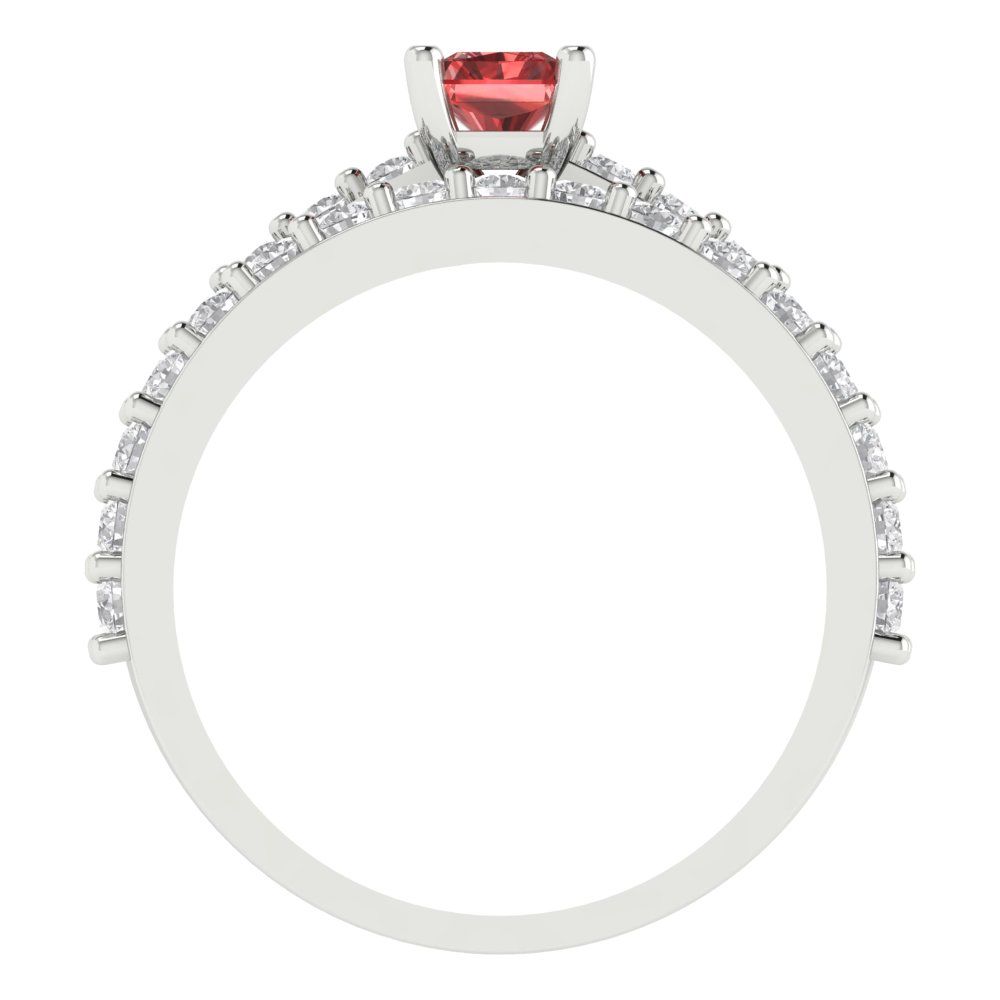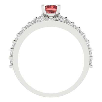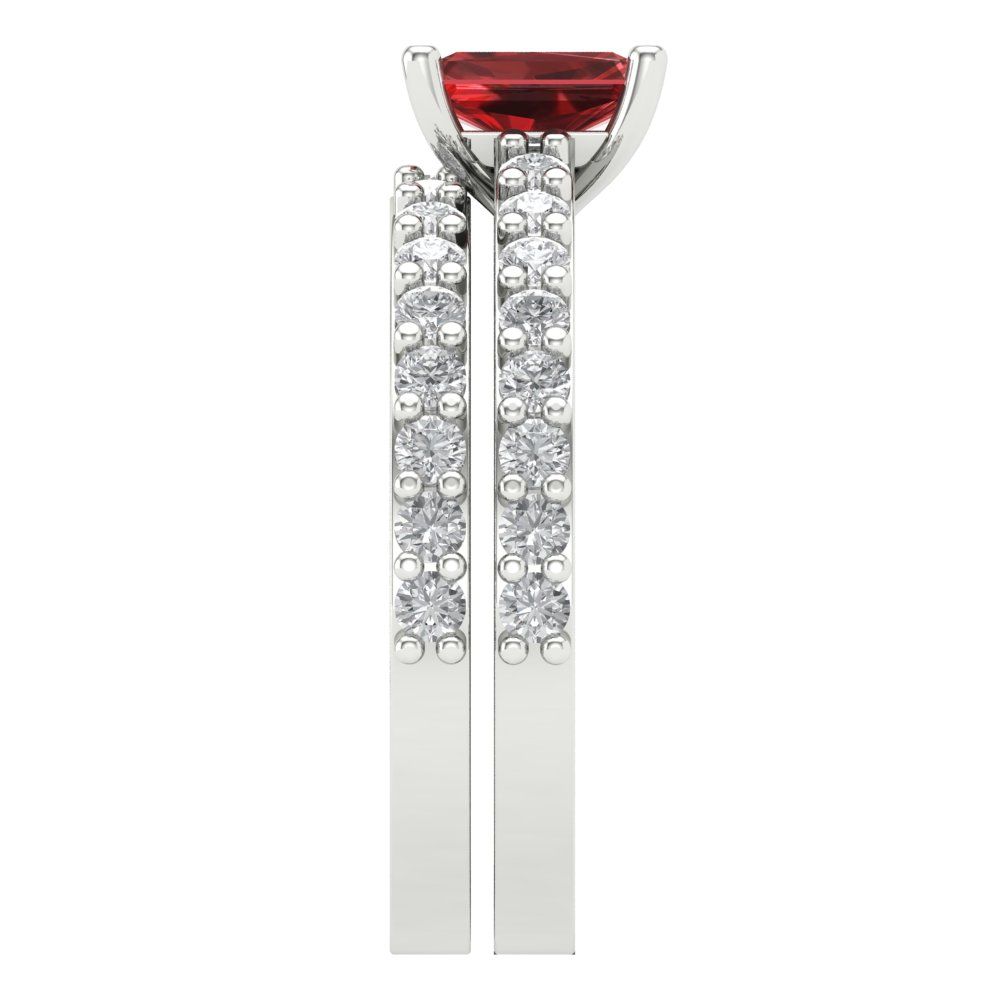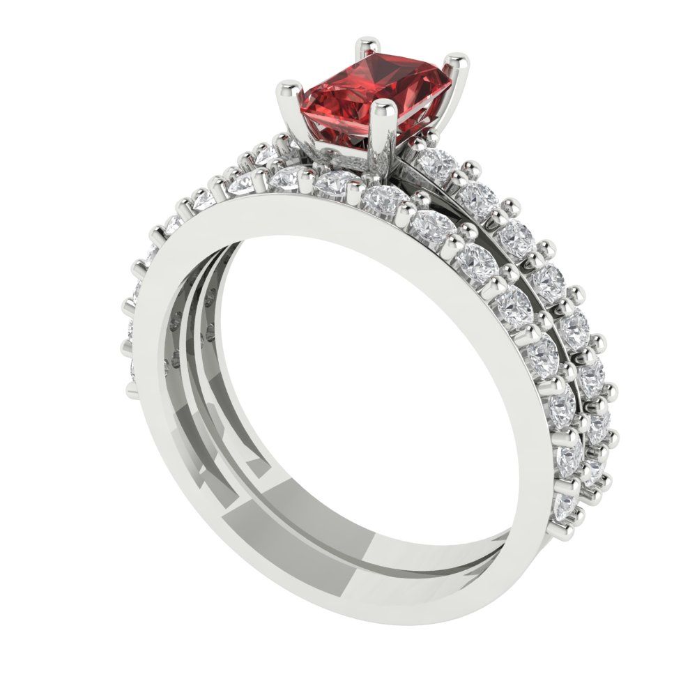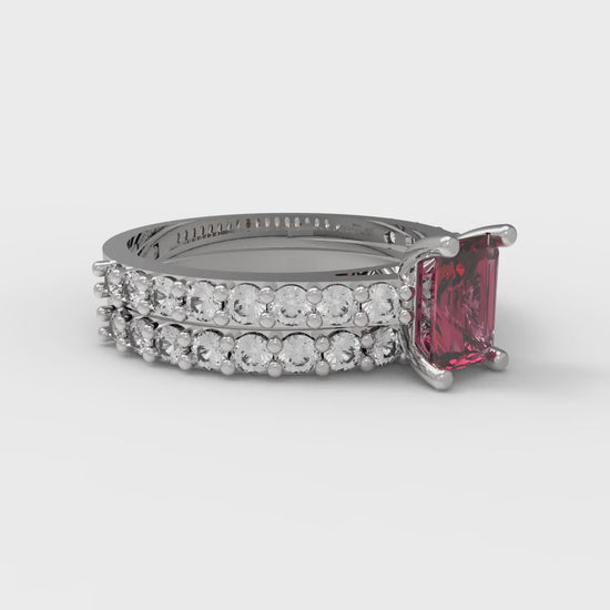 1.325 cttw Emerald Cut Natural Garnet Bridal Set - Solid White Gold Engagement Ring & Wedding Band